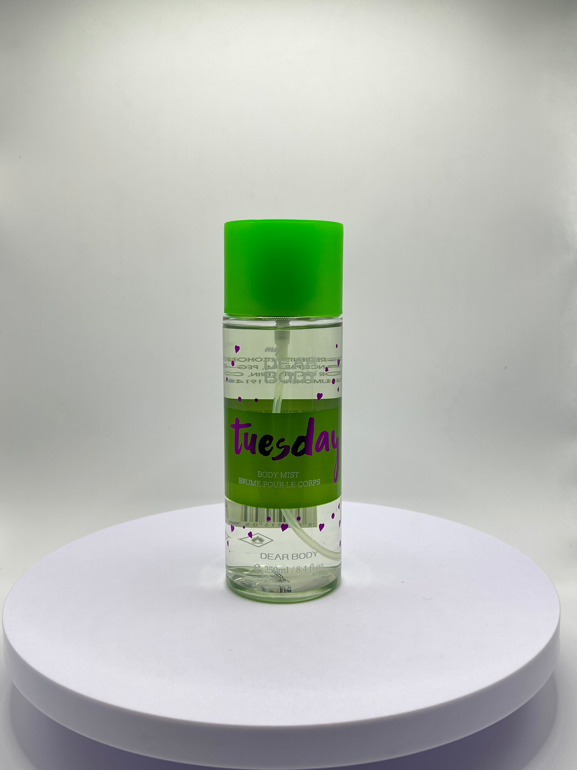 Refresh your senses and embrace a new day with Dear Body Tuesday Mist, a light and invigorating fragrance designed to keep you feeling fresh and confident. This uplifting mist opens with bright citrus and juicy pear, delivering a burst of energy. The heart unfolds into a delicate blend of white jasmine and blooming peony, adding a soft floral elegance. Finally, a warm base of vanilla, musk, and sandalwood creates a smooth, long-lasting finish.
